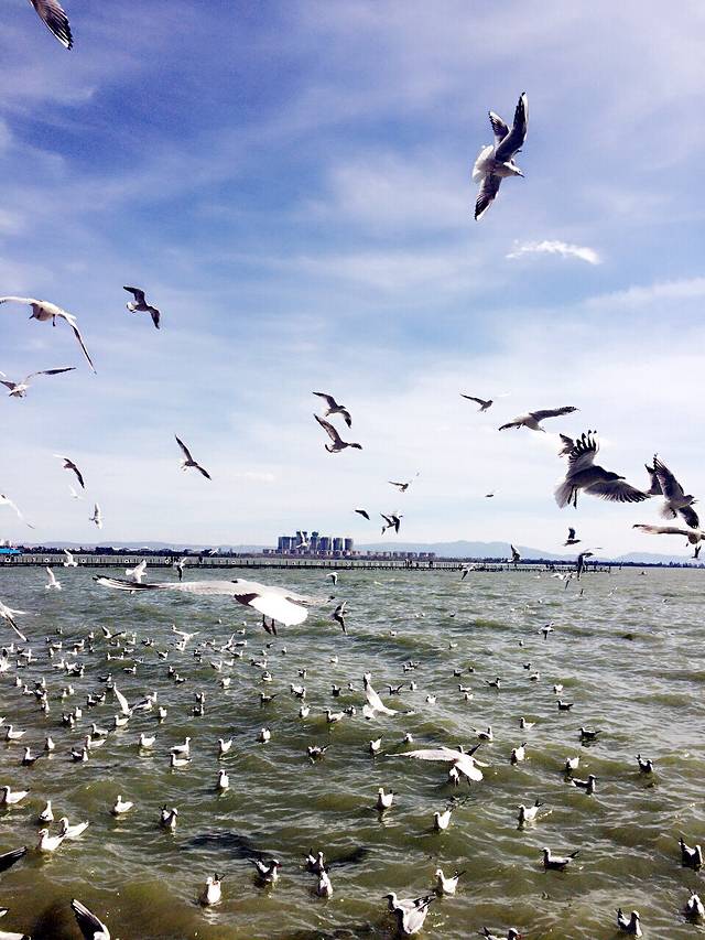 转了两趟公交,将近30个站(土豪可以选择打车🚖)虽然有那么多个站,但到了陌生的城市,坐公交还是挺好的,可以看看风景,体验下当地的生活节奏,我是睡到自然醒出发的,到目的地差不多可以吃中饭了,吃了当地的特色饵丝,就开始逛了,在这里最让我惊喜的就是看到了海鸥,我记得当时整个人都沸腾了,心情很是激动,因为我第一次看到海鸥💃✌️😆……不过这里水质现在看看还真的是不蛮好呀😂