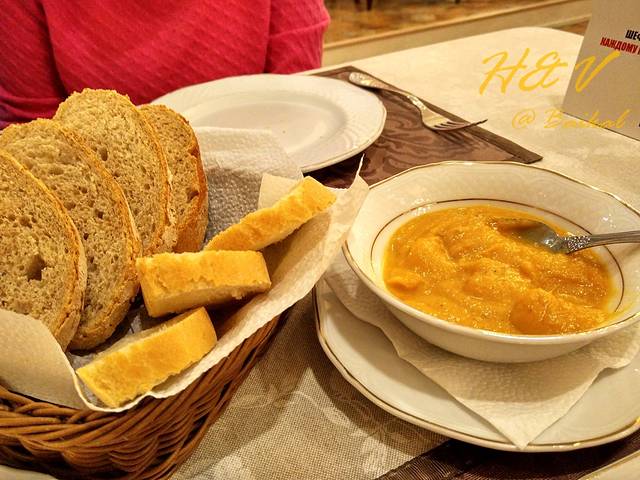由于我们在这儿的几天都没正正经经地吃过一顿红菜汤,于是今天一下子点了两份,味道还是很不错的。