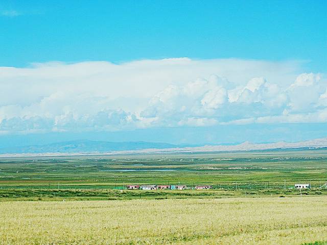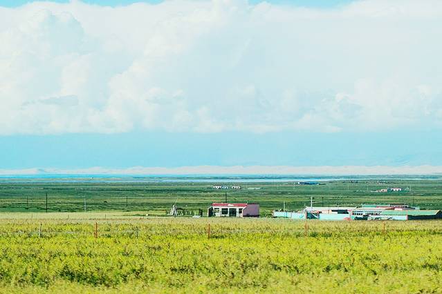 去到门源的时候天空还是那么阴霾,已没有络绎不绝慕名而来观赏的游客,也没有万亩油菜花盛开的壮观场景,取而代之的是一大片黄色的麦田围绕在房屋周围,远处的雪山静静地矗立在那里,多了一份宁静。