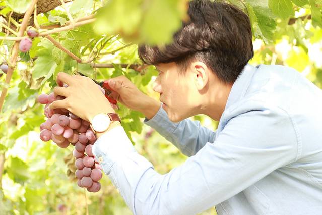 吃饱之后就开始摘葡萄了,找来剪刀和袋子,顺便拍几张照片。