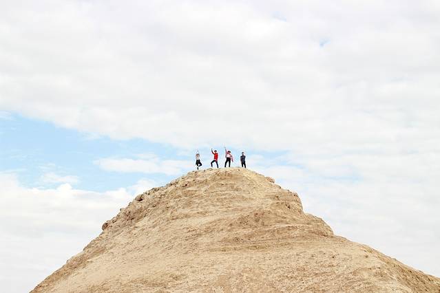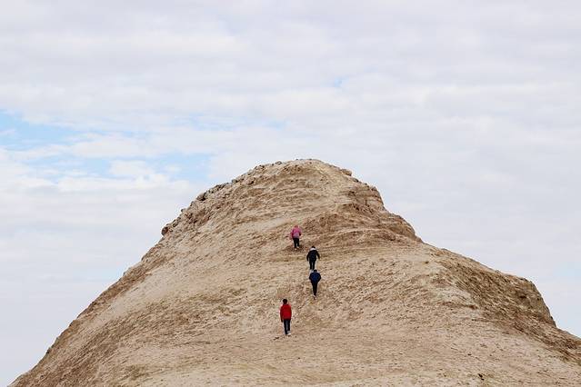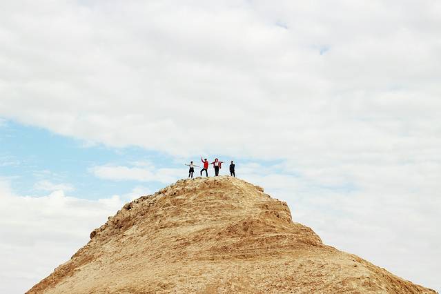 年轻下去休息了好久~跟在我们后面的人也是气喘吁吁。去之前我就在网上查过攻略说不顺着梯子爬上去会很费劲~去到那里本来想跟着大众从梯子爬上去的,然后小伙伴们说年轻人不要畏惧挑战什么之类的话,我被怂恿之后也跟着他们一起在梯子另外一边只有绳子攀爬而且人少得可怜的地方上去。结果证明不顺着梯子爬简直是太累太累太累太累了!!!!!!登山的时候每踩一脚都会陷进沙子里然后往后滑,其实只前进了那么一点点。爬到中间的时候已经累瘫了,沿途超越他人或者被超越的时候认识或者不认识的都在相互鼓劲加油,最后一鼓作气冲上去到达的时候真的觉得身体已经不是自己的!!!我们爬上去的时候直接把纱巾铺在沙子上躺下去休息了好久~