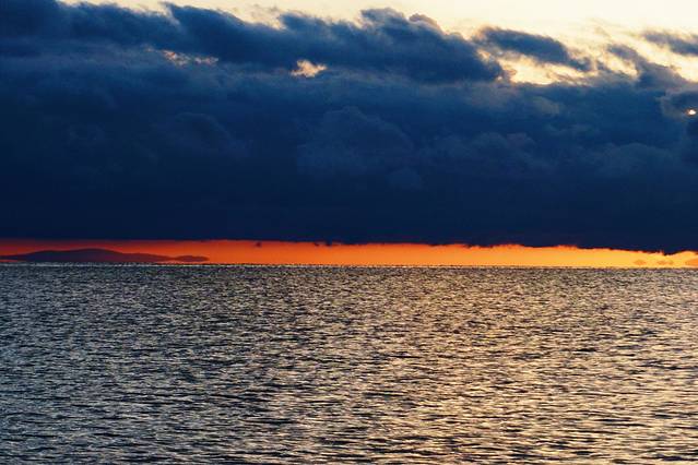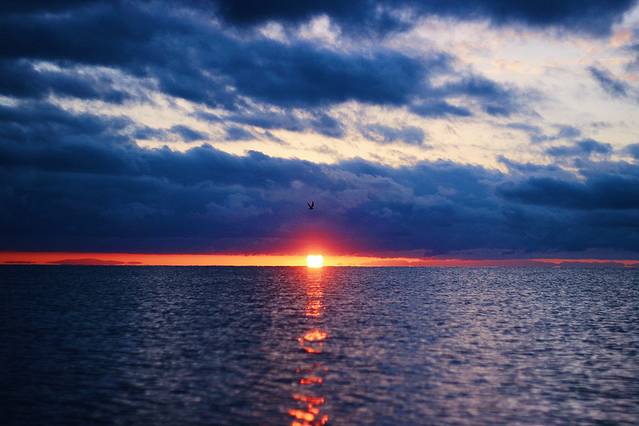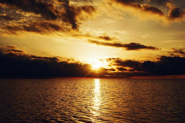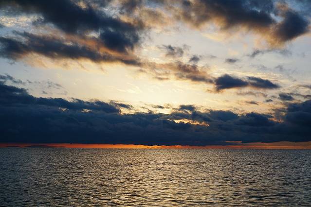 遇到海平线上渐升的日出