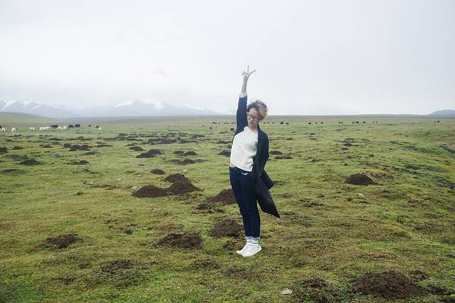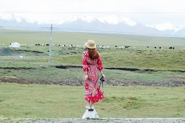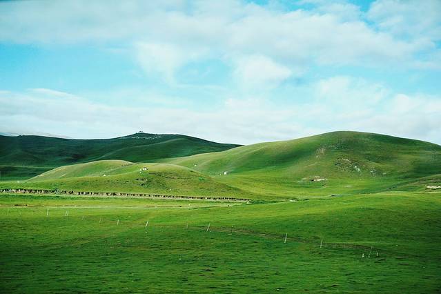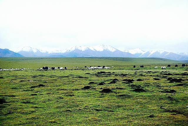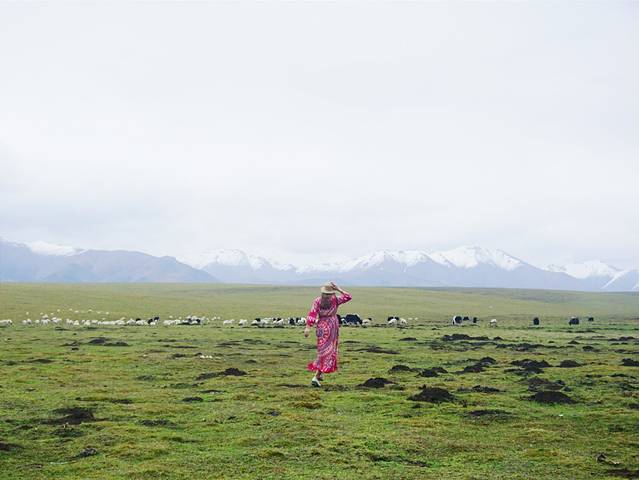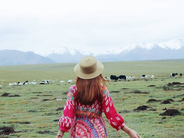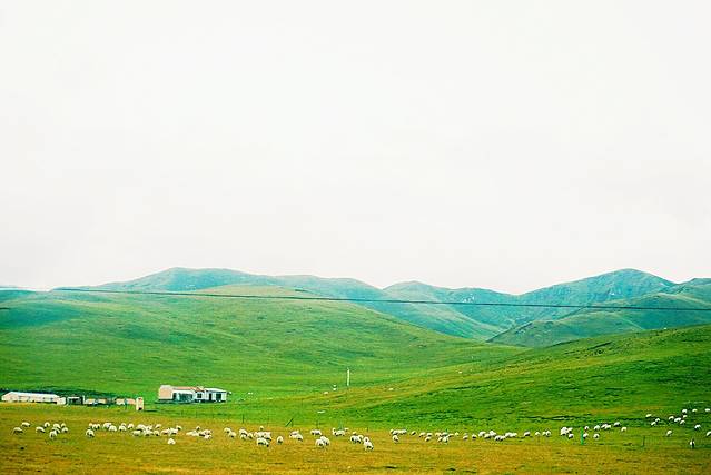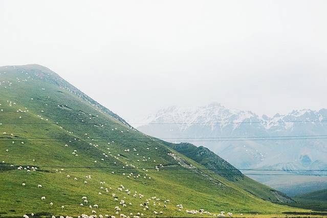 9月份祁连大草原的草已经有稍许枯黄,天气特别特别的冷,从张掖到祁连的路上温度一直在下降。我们路过这片草原的时候尖叫了出来,眼睛里看到的远远比拍出来的震撼许多,那梦中白茫茫的草原此时此刻就出现在了眼前,一望无际。远处还有许多雪山,成群的牛羊在草地上溜达,饿了就低矮着头吃上一口。