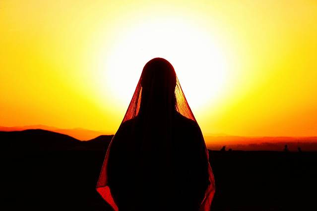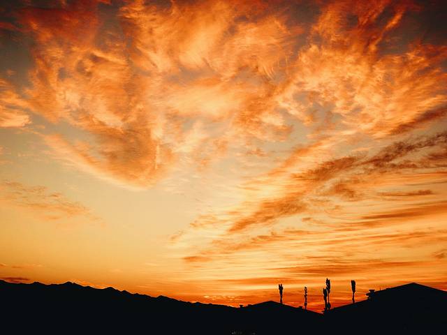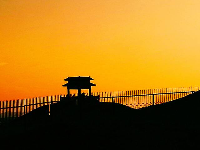 大漠中燃烧的夕阳。