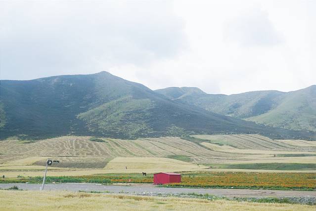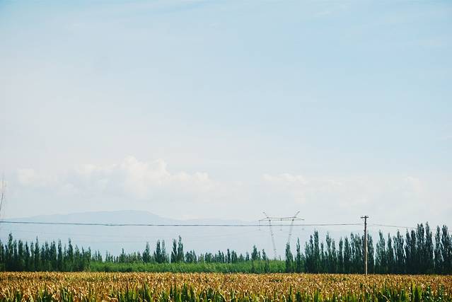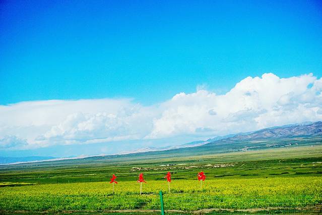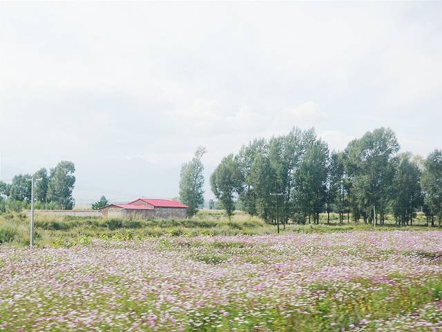从张掖丹霞地质公园出来之后我们便回宾馆收拾行李离开张掖,一路行驶在国道227上,风景还是很不错的,路的两边种了很多花朵、大片的玉米地及麦田。只不过我们今天要赶回西宁就没有停留,而且两旁都被树挡住了,所以就没有拍什么照片。