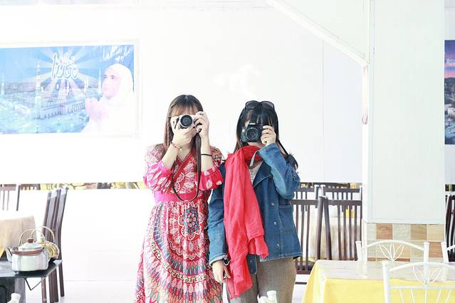 一直觉得这次我们两个人的合照很少,拍了雪山之后两人就回到餐馆里拍拍拍。