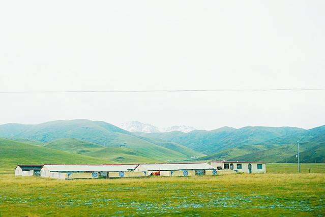 但我们到达祁连的时候,雪已经没了。但一路走来是连绵不绝的雪山,草地上还有蓝色的野花,在寒风中茂盛地盛开着。