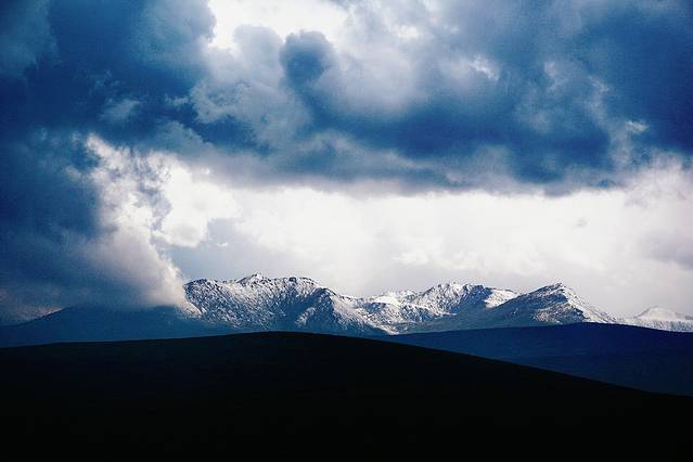 远处的雪山,在乌云的笼罩下更显神秘。