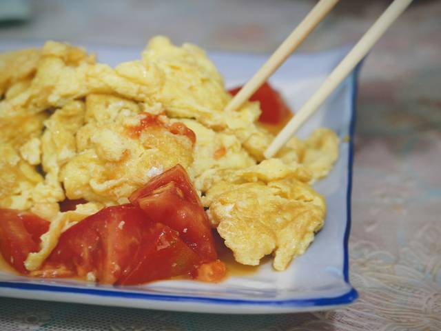 因为小马哥是纯正的回族人,所以我们都是去清真饭馆点菜吃的。不得不说,青海一盘菜的量很足,由于地区原因,那边的米饭和蔬菜类都比较贵一点,但肉很多~我们一般点四五个菜就够吃了,长期在各地被压榨的我们去到那里感觉受到了上天的眷顾~每次我们去到饭馆时都很饿了,很多都没有来得及拍照就已经开始动手吃~仅存一点美食照片给你们解解馋。托某人的福,我们差不多每一顿都点了各种各样的番茄炒蛋。