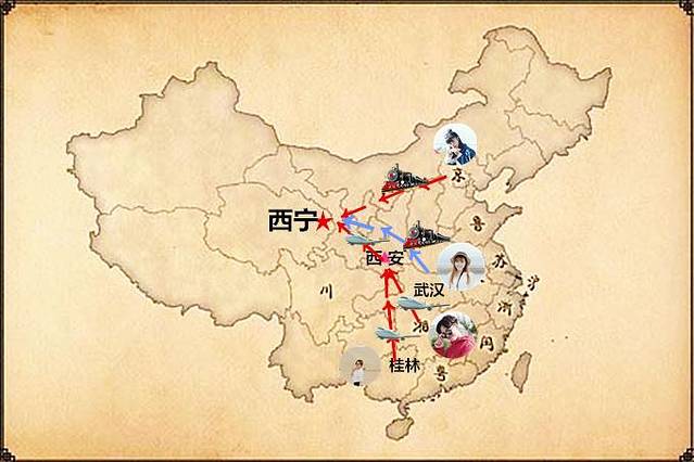 (4)桂林→西安→西宁:飞机
