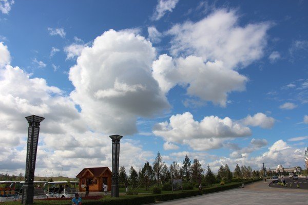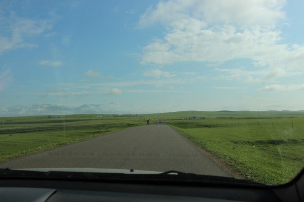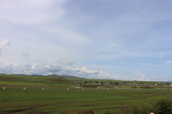 北京出发,29小时后火车到站,海拉尔早上4点半已经天亮,第一感觉这个城市很干净,天很蓝,空气很好,很凉爽。虽说是车站,依然感觉没几个人。因为找的拼车同伴有一个mm是从湖北赶过来,7点半到站,我们需要在火车站等三个小时,海拉尔火车站附近既然连个肯德基,麦当劳这样的快餐店也没有,旅馆也不是很多,好吧,只能在广场上等。找了一个地方吃点东西,聊聊天三个小时也很快过去了。程师傅和湖北mm准时到站,ok,我们草原旅行正式开始了。