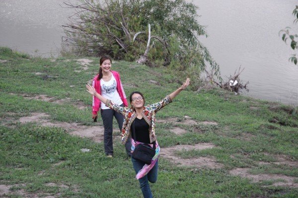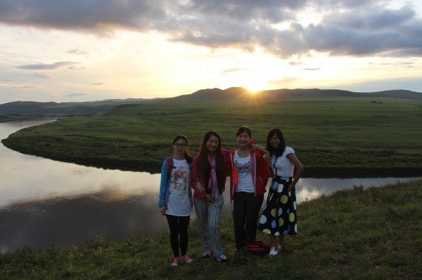 我和飞飞,玲玲,芬芬尽享格勒河的美景