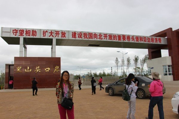 第一个地方先去了黑山头口岸,这个地方就是去往俄罗斯的通道,我们就在门口看了下,拍照留念下。还有一个可爱的小MM抱着小弟弟,感觉很萌,很有爱。