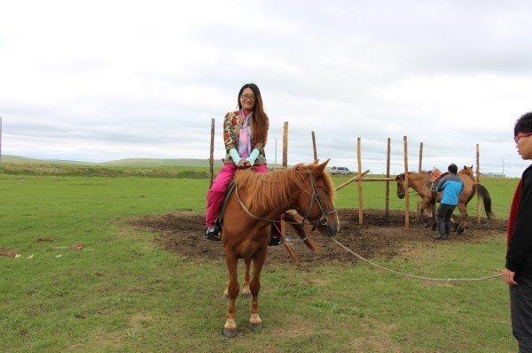 来到一处黑山头的蒙古包,也就是我们骑马的地点,一圈100元,大概40多分钟的样子,主要是以前没有骑过所以决定尝试下,还是有些害怕,只能让人牵着走。
