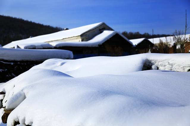 在东北生活多年的我,许是看雪看的多了,总以为身为东北人没有必要到雪乡雪村这种地方去旅游,所以朋友约我去雪村时还犹豫了一下,可是人生第一次来到雪村,却发现之前的想法大错特错。雪村里的雪和城市中的雪是完全不同的,雪村没有着意雕琢的冰灯雪雕,没有浓郁的商业气息;有的只是纯净自然的风光,淳朴的民风民俗,雪村就是一座古朴原始的雪色村庄!