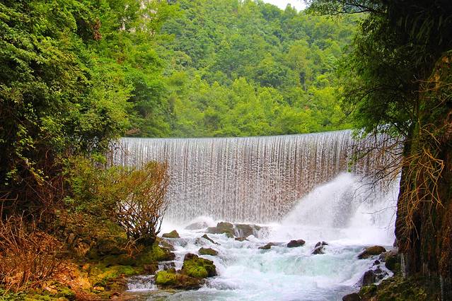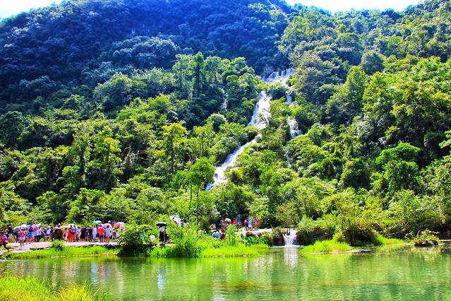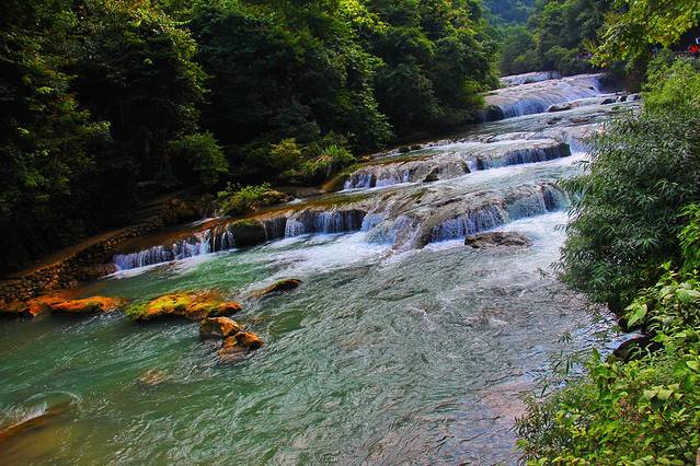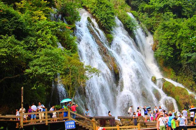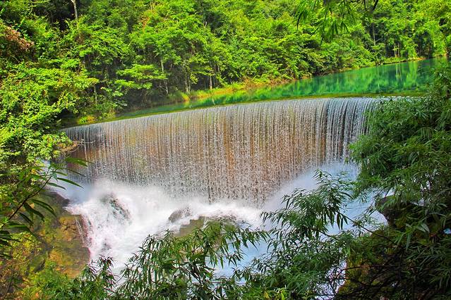陡坡塘瀑布,看过西游记的应该都比较熟悉,《西游记》片尾曲师徒四人牵马过河的场景就是在此取景,这个景区是离售票处最近的一个景点,也是我们游览时游客最少的一个景点,可能是因为时间原因景区基本看不到什么游客了,景区很小30分钟基本就可以游完。