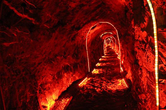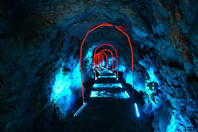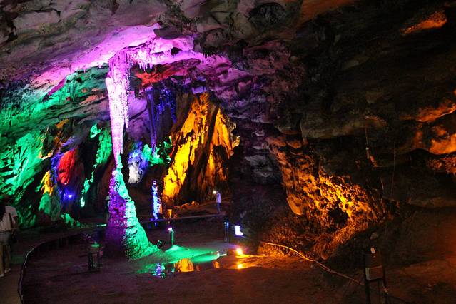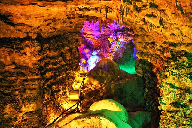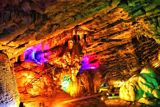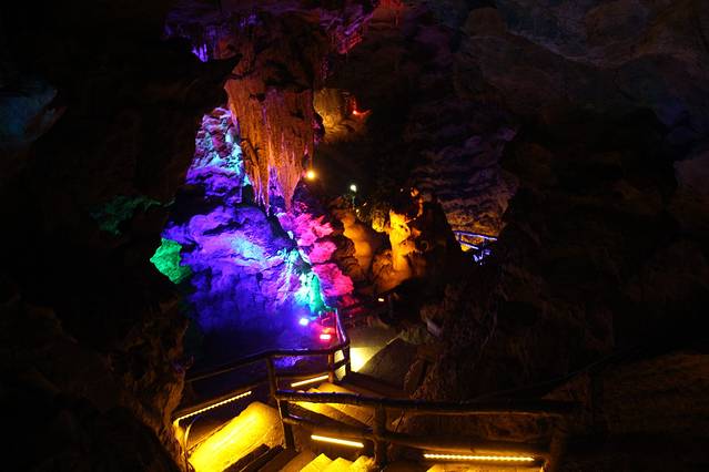 灯光下的青龙洞特别漂亮美丽,随着LED灯的渐变青龙洞也在变换着不同的颜色。