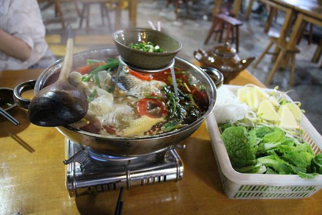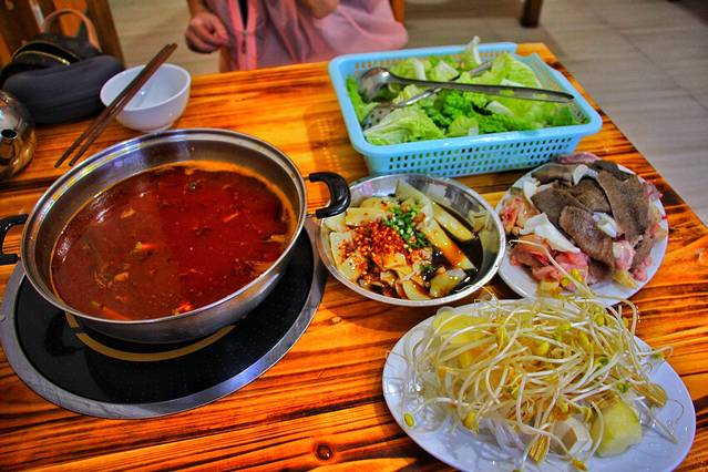 这家火锅店就在我们住宿的7天对面一条巷子里,开始以为是自己点餐,原来都是配好了的按人头算,我们2人75元根本吃不完,非常划算。