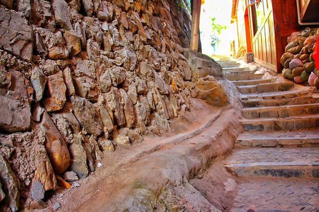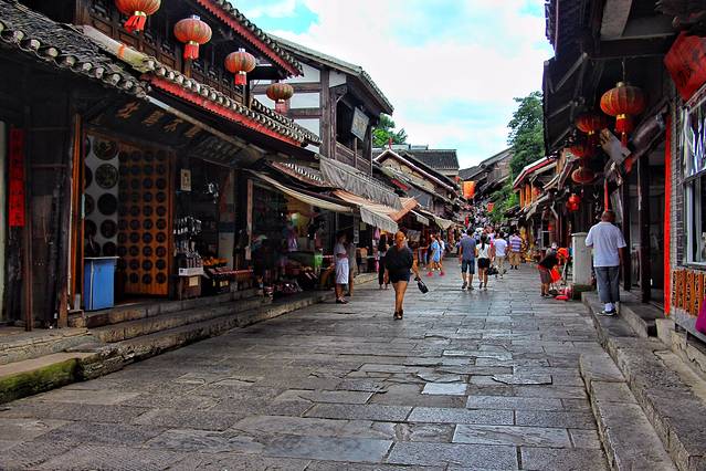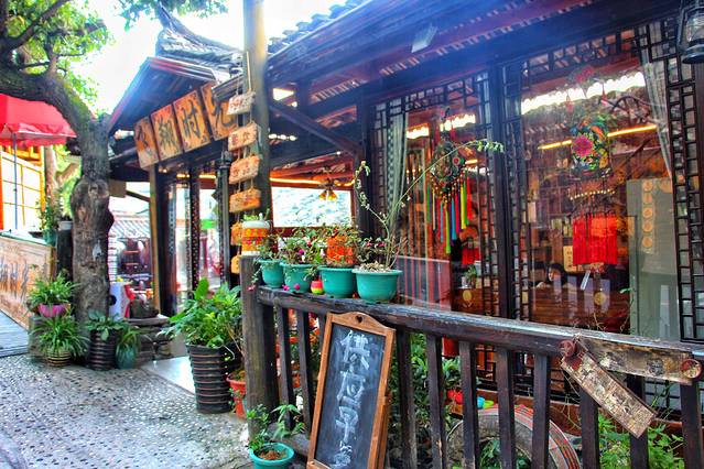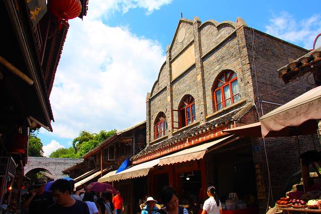 城墙上无风景可言加上太阳又毒准备随便逛下就转换目的地,谁知无意间发现了这条小道,古镇街景就这样出现在了眼前。很商业化的一条购物街,对于经常出门旅行的我来说已经完全没有了吸引力,更不会随便购买纪念品。