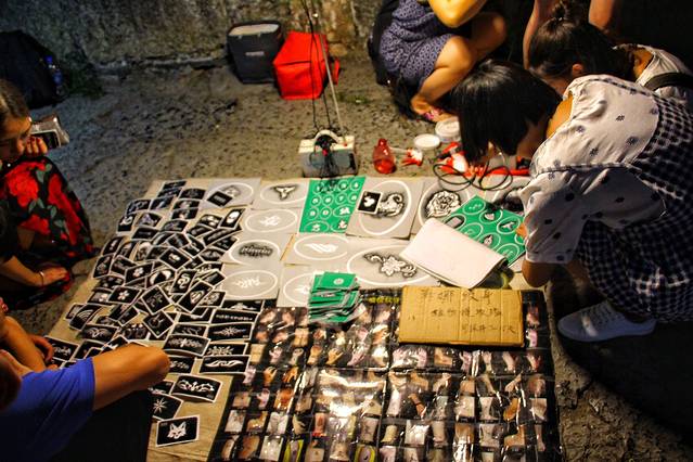 开始无人问津的纹身小摊,因为我们的光顾带动了不少客源,这种纹身是喷上去的不特意清洗可保留15天左右。
