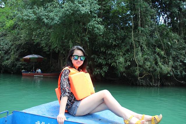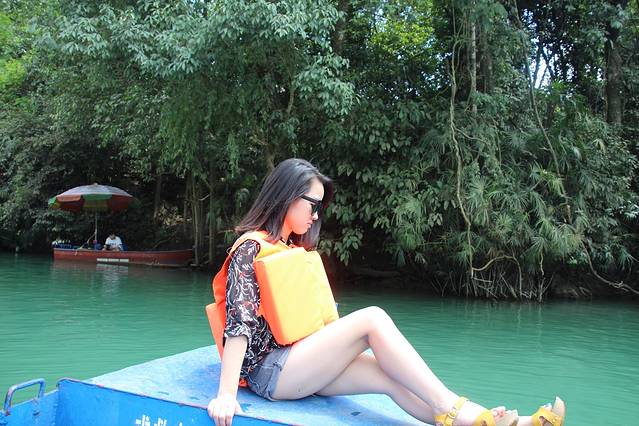 从铜古桥出来后就坐观光车到了景区门口,当时一看时间才5点多,很舍不得出景区,立马喊住了观光车小师傅让他再把我们拖回小七孔古桥,观光车都是需要车票的一个景点一张票都是规划好了的,下车时我们又找小师傅拿了2张已经被撒下的车票,没有车票不然等下得走着出景区,整个观光车上就我们2个人,吹着风一路呼吸着大自然的新鲜空气这是多么美妙的事。