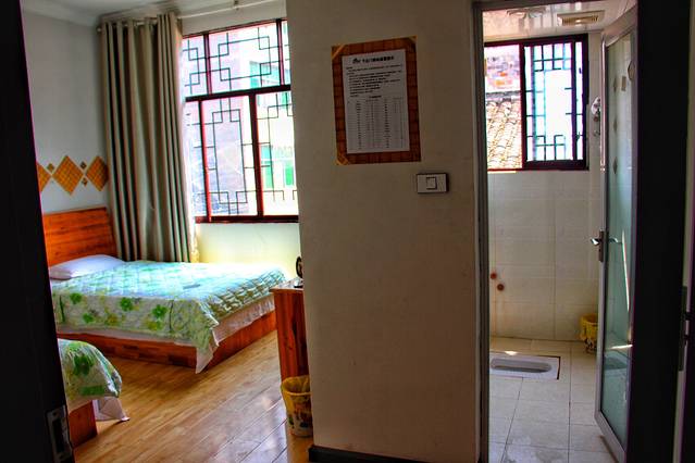 在星空微舍准备续房时,我们的房间已经被预订出去。看中的主题大床房却要二百多,房间偏贵,同价位的在其它店可以住到河景房。于是只能再次换住处,在星空微舍100米处城门洞找了一家,不换不知道一换吓一跳,这里这么大间房还有单独卫生间空调还免费才126元,比起星空微舍112元10米空间不到的上下高低铺不知道好多少倍,本来准备以后推荐朋友来,但老板说经营到8月份就不准备开了,因为精力不够加上是2个老人在经营,不太会做网络营销生意也比较冷清。