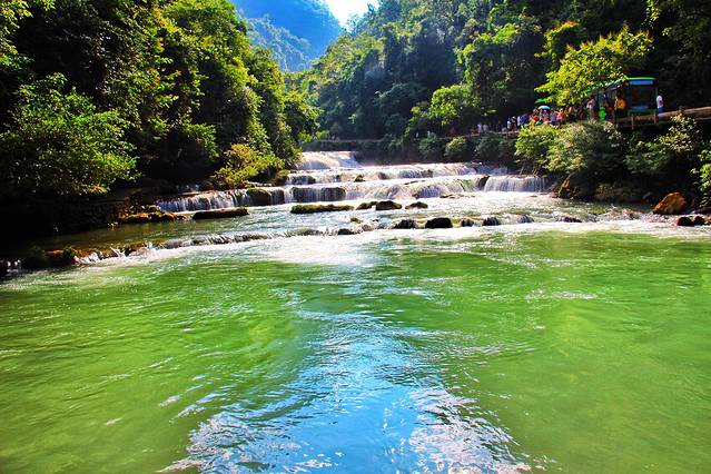 拉雅瀑布旁边就是河道自然形成的68级跌水瀑布,高高低低,层层叠叠竟领风骚。