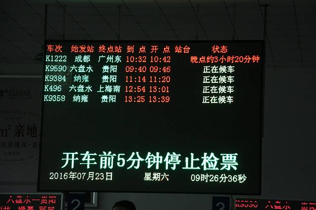 如期的出发了,可这仅仅只是囧途的开始,原本是要在铜仁南下车至玉屏坐火车到镇远,可却在停靠铜仁南时没有语音播报错过了下车,真心觉得这趟列车太不靠谱,只在前几分钟播报了一次马上到达铜仁南站就没有了任何提示,当时我们听到广播就马上把行李取下来在座位等待准备随时下车,可既然再也没听到提示,后来感觉不对去询问才知道早已过站,乘务员告诉我们可以把我们送回去,要我们去办理手续,感觉突然看到了曙光,可当我们到了工作室说明情况后给我们的答案是不可以,因为已经没有返程车,只能选择座到贵阳北,补票一起去了326元,但当时到贵阳的机票都才二百多还浪费了我这么多的时间所有计划被打乱,在镇远提前预定的房间也只能改期。