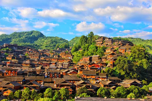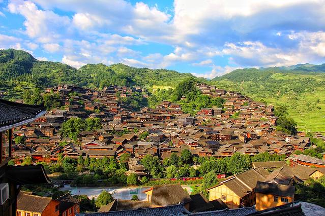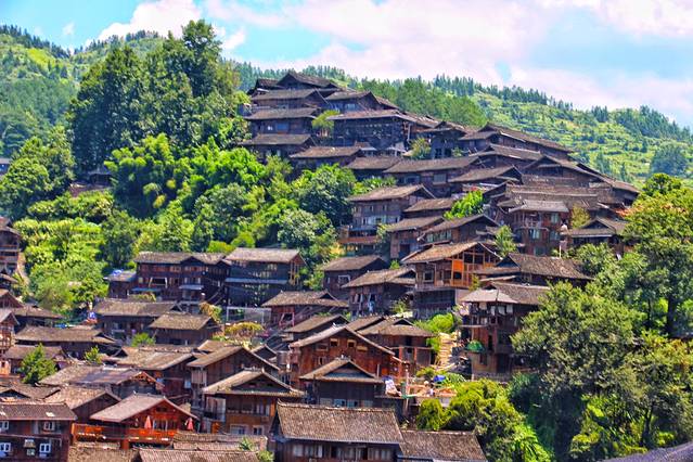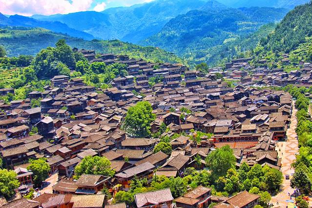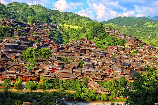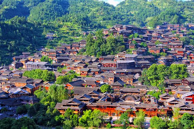 西江千户苗寨是一个保存苗族“原始生态”文化完整的地方,由十余个依山而建的自然村寨相连成片,约有1000多户人家,所以称为千户苗寨,是目前中国乃至全世界最大的苗族聚居村寨。