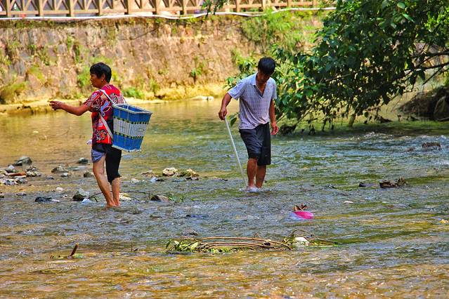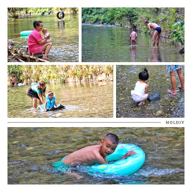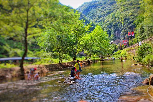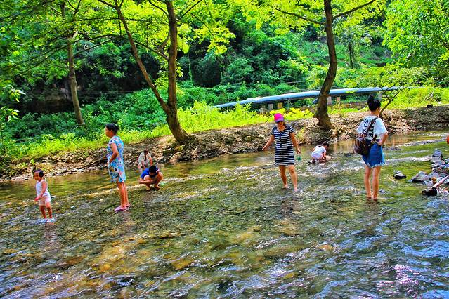 沿着祝圣桥一直往下走就来到了一条小溪,很多人在此玩水乘凉。