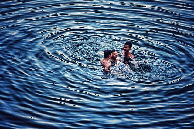 三熊孩子在舞阳河游泳,也许他们已经很有经验但我依然替他们感到担心,网上不是频频报出溺水事件。
