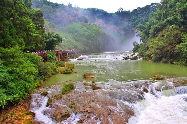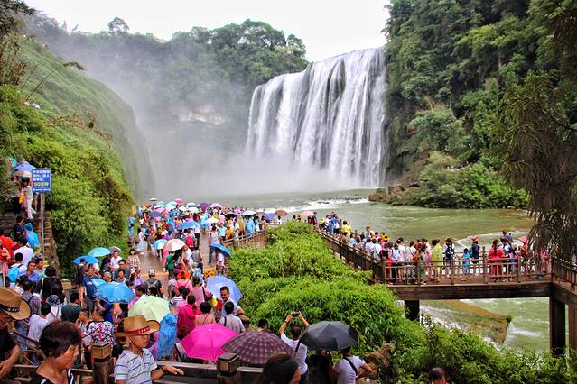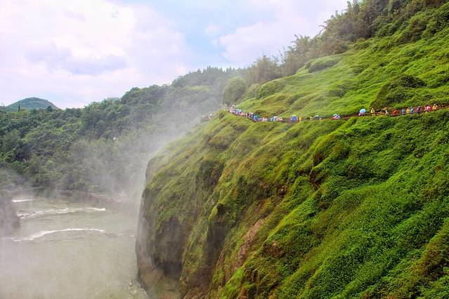 人依然是多到爆,但路相对好走不少可以见机一路穿插过人群,也可以选择坐大扶梯50元,但个人觉得完全没有必要。黄果树瀑布是由高至低方向走的,想感受大扶梯可以选择回程再坐不然是在浪费时间。