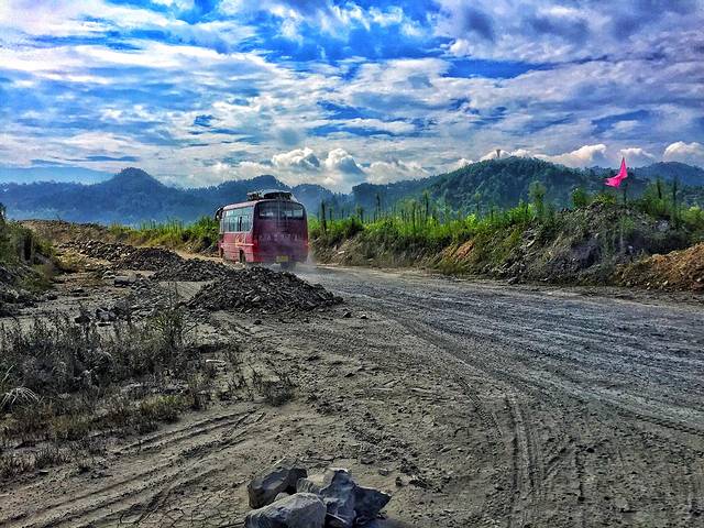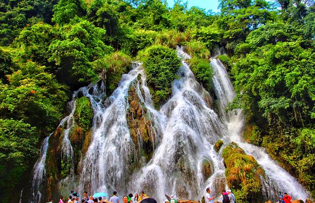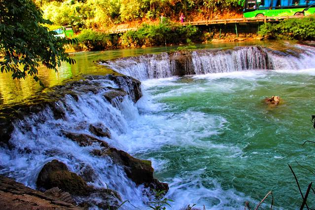 拉雅瀑布就在路边,和翠谷瀑布有点类似,只是拉雅瀑布水势更大,如雷般腾空喷泻声势浩大颇为壮观。