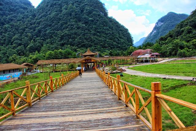 进景区路过的风景,如果不是自己开车一定要买观光车票哦,景点距离挺远的。先去的天星桥车程就花了差不多20分钟。