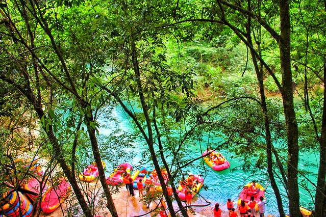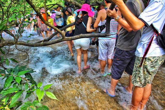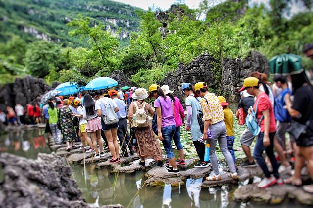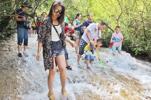 天星桥景区,奇山、怪石、溶洞、异水融为一体,来这里一定要找一找属于你的那块生日石,很遗憾没有找到我的生日石,人多到你无法想象,路又窄完全走不动啊,基本是一个脚挨着一个脚在走,根本无法去注意或发现美景,生怕自己一个不小心就被挤下水。