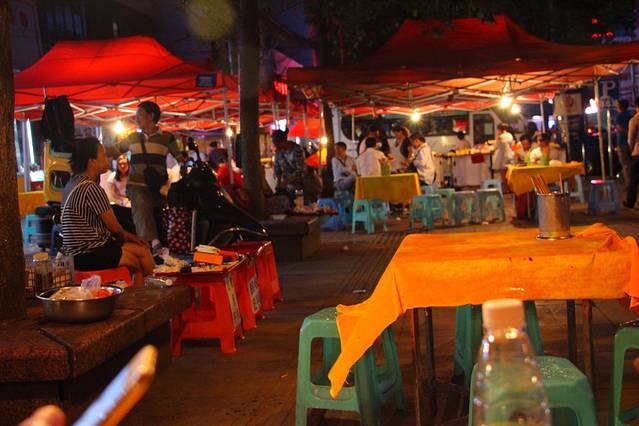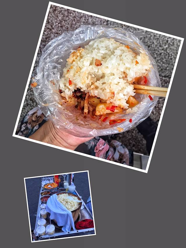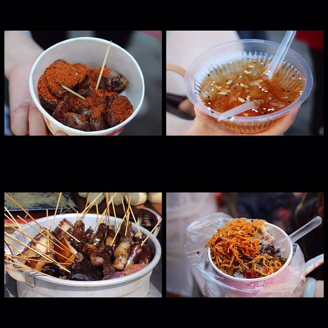 离发车时间很充足当然是选择先填饱肚子,火车站外面就是夜市有各种小吃。