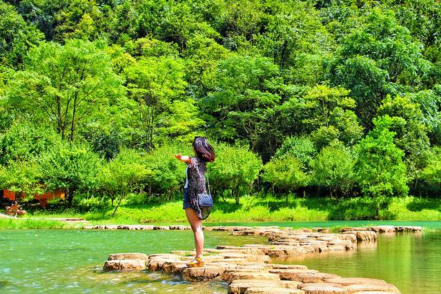 很多到了小七孔桥后就直接坐观光车出了景区,而我们发现这条小道沿着一直往前走就到了铜古桥,不是什么特色景点自然也没什么人来,于是我们又欢快的摆起了各种pose。