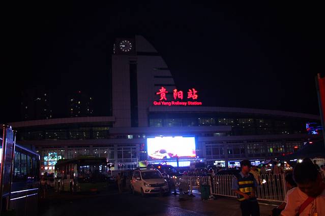 我们因失算了排队时间,而错过了19:35的火车,尽管我们在优尚青旅拿到寄存的行礼后,马上坐了摩托车火速赶往火车站还是没能及时上车。其实当时是还有15分钟才到发车时间的,但19:35至安顺的火车已停止了购票,开始怕时间来不及而没提前购票,免得还要去窗口排队改签,因出发前在火车站核验身份证的排队经历太让人痛苦。本想改坐汽车,因时间太晚客运站也已经停运,只能选择下一班21:27的火车而且还是站票,想想一个小时也就无所谓。原计划是八点多到达安顺去有名的顾府街夜市寻找美食一饱口福的,什么水果冰粉、砂锅凉粉、安顺裹卷、烤鸡翅等...........想到这些口水流了一地(后面得知美食一条街已经不在顾府街搬至到黄果树景区附近)
