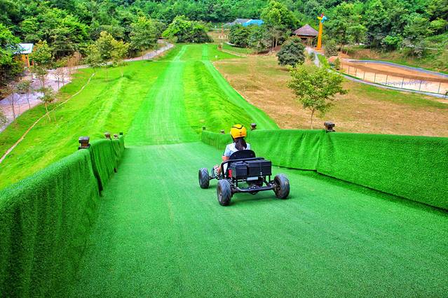 滑草场好像是30一人,本想玩的但这距离实在是太短了,可能还没来得及感受就已经到了终点,这个小滑道是免费的,我们可爱的小丫同学为了要拍张美美的滑草照,连滑了2次结果把pipi给滑伤了后续几天里睡觉都只能趴着睡。所以如果穿短裤还是不要尝试,不然就是这样的后果,我可以说其实我也穿的是短裤吗