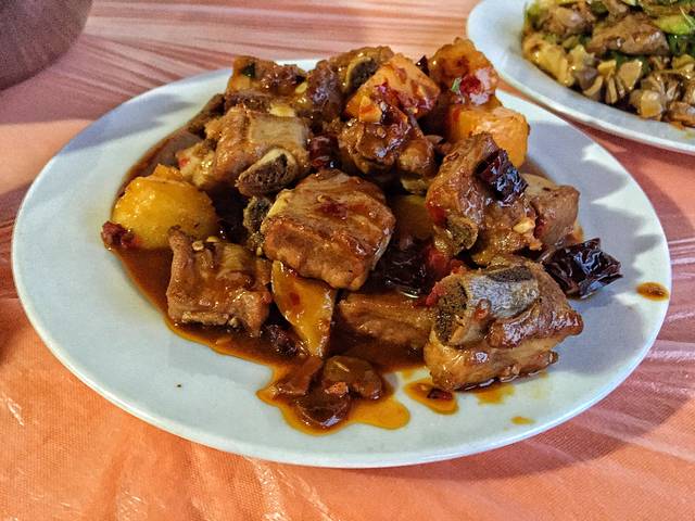 晚饭依然还是在客栈老板家吃,酸辣鸡杂里面的芹菜好好吃哦,鸡杂特别新鲜是现杀的鸡,因为当天正好有顾客要了只土鸡,当时我们也想吃土鸡的可2个人实在是吃不完整只,排骨份量也很扎实吧,可惜我不喜欢吃排骨。我是个严重挑食者,自己不会做但嘴巴确很刁。