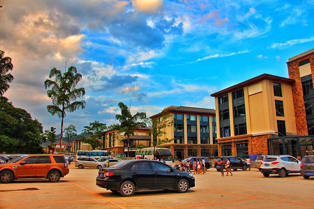 从贵阳北出来,凉风飕飕,完全不像夏天,头脑是空白的不知道该往那个方向走不知道该住哪里,在广场找了个地方坐下用手机简单做了下功略,决定前往火车站附近住,第二天准备去花溪公园和青岩古镇离市区都有一定距离,我想至少从火车站去往各个地方的交通应该方便些。广场外面很多黑车谈好价格40元就出发了,车上和师傅攀谈他得知我们明天要去安顺,就一直在说让我们包他车过去收费500元,告诉他不需要还一直在说让人很反感,他看到我们不理会就说介绍我们去住宿的地方,也被我们拒绝了,当时闺蜜发现在花果园有公车可以直达青岩古镇,方向正好也是往火车站方向比去火车站距离更近,让师傅绕路送我们过去,他确开口要100元,顿时感觉自己上了黑车,不对这本来就是黑车,当时和他理论不清,心里也有些气愤,我说那你就去火车站吧,也决不向恶势力低头,当时也是有些害怕他的,师傅脾气火爆嗓门还特大,我们倆弱女子大晚上还真怕出点什么事,后来我一直没敢再说话生怕刺激到他,还是闺蜜给他做思想工作才答应送我们去花果园,也许也是知道从我们身上不可能获得额外收入,听了闺蜜的劝解(送我们早点到,你也可以结束早点回家,没必要去跑多的路浪费自己时间呀)下车时师傅态度好了不少,帮我们把行李搬下来,还对我说他不是坏人,我心想你那样的火爆性格和大嗓门,这么急功近利让我很难想象你是个好人。