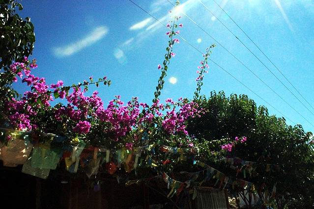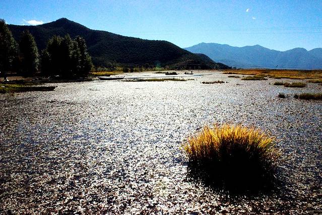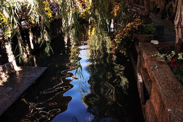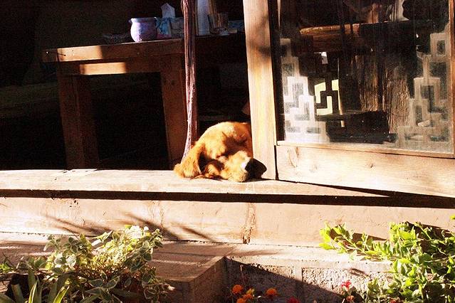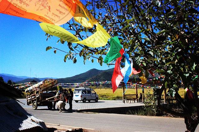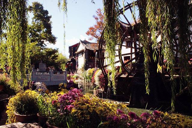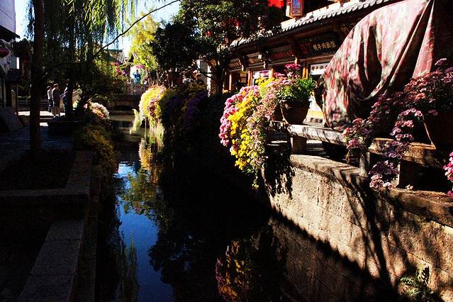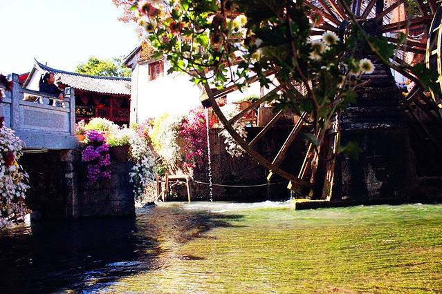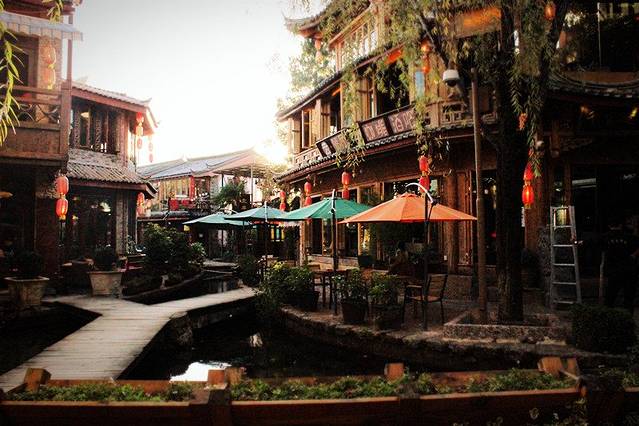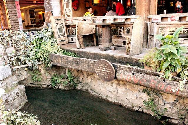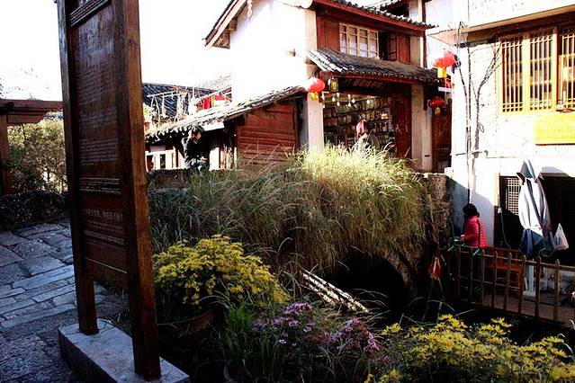 紧挨四方街的通往大水车的是酒吧一条街 这个时候的酒吧都刚开门 各家的边说笑边打扫卫生 水桶泼出的一桶一桶的水和扫地的刷刷声让人忍不住就眯起眼睛晒晒太阳