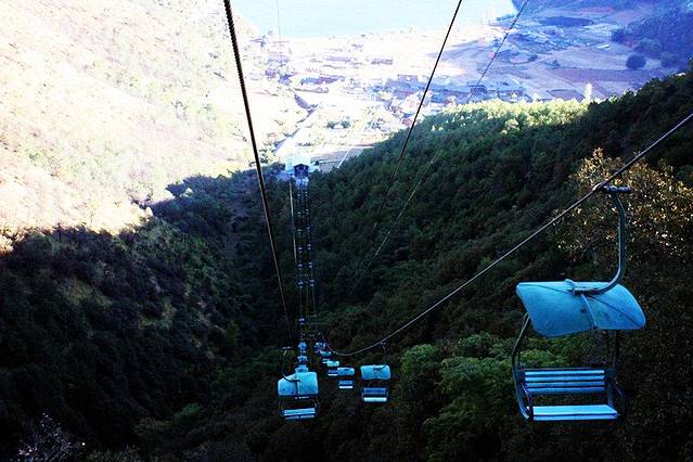 开始上格姆女神山 ~先坐这样的小车上去 然后坐索道