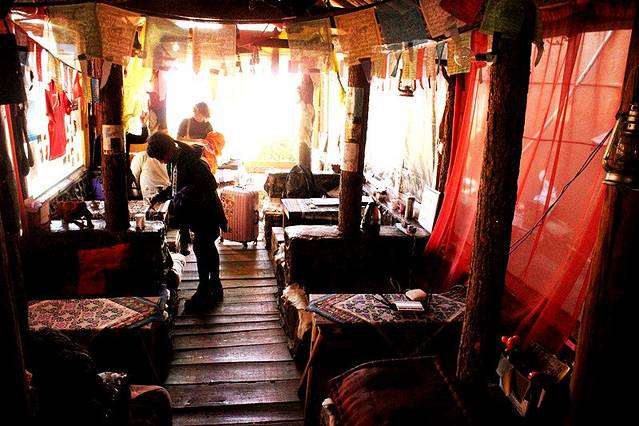 到了客栈已经12点了~帅帅的客栈老板一直在等我们 我们轻轻把东西搬进屋里生怕打扰了院子里别的客人 一切都收拾妥当听到了老板出去关门的声音 你无法凭空感受到那种无论在离家多远的地方 总有一个地方有暖暖的灯光还有一个等着你回去的人的那种温暖 我是个泪点很低的人 门关上的那一刻 突然就热泪盈眶。