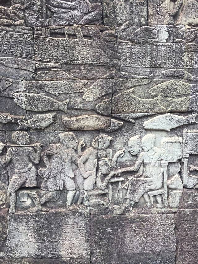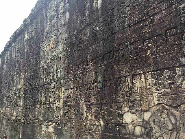 4)搅动乳海:这是吴哥浮雕中反复出现的一个重要的故事,它是一场善神与恶魔的大战。