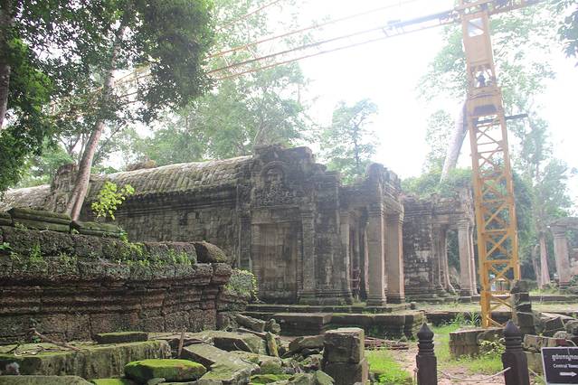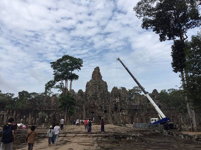 呐!这里就是巴戎寺的门口!吴哥一直有接受来自各国的修建,所以门口有看到起重机也不足为奇。