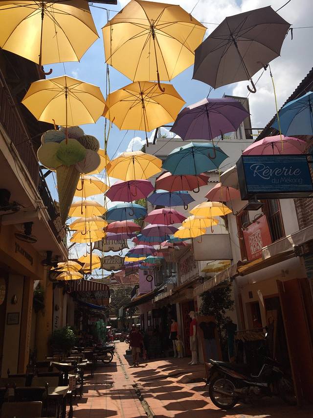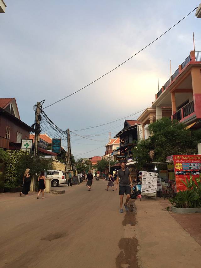 下午三点就到暹粒啦。车站不算是车站,就是一块田野地,然后仓库门一直要关。我们拉着行李箱走出来,刚好遇到一辆TukTuk。不过酒店有点难找,我们确认了这条路无误之后,来回找了三遍。最后,终于找到啦~