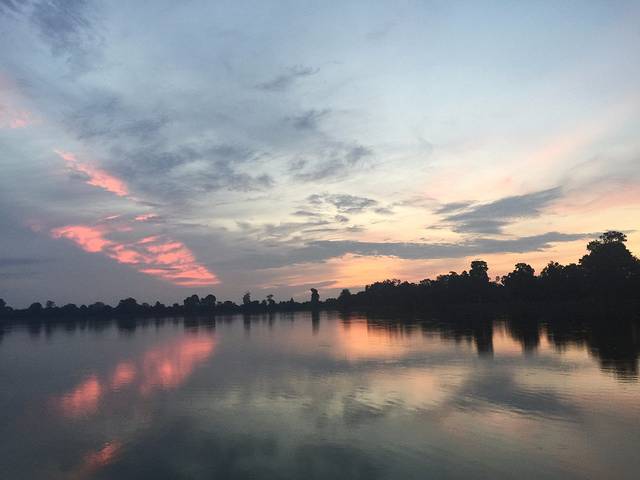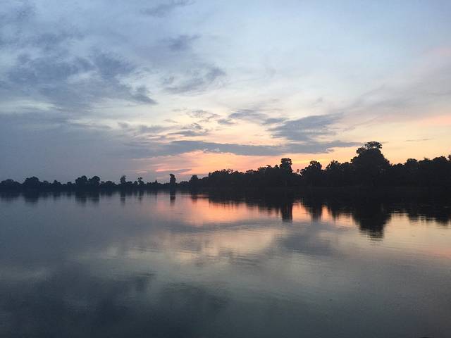 暹粒市区蛮方便的是美食都在周边,因为已经是下午的时分,原本想去红闸门餐馆的却被告知休市中,只好随意找了家餐馆。吃饱之后,原本是跟TukTuk司机约好说我们先回酒店休息下,一个半钟后来接我们去洞里萨湖。正在犹豫之际,上网查到说洞里萨湖需要另外支付25美刀,观看的是高棉水上人家的生活场景,性价比来说不是太高,所以我们决定放弃,直接回酒店休息。走路回酒店的路上,遇到了我们的TukTuk司机,他对我们放弃洞里萨湖的行程觉得蛮可惜的。闲聊之中,最后提到《吴哥的微笑》,TukTuk司机表示推荐,然后说了门票才14美刀,我们惊呆了,这跟我们先前查到的价格便宜了很多啊。于是,TukTuk司机就又兜着我们去买票。