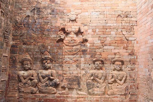 豆蔻寺:1968年得到了部分修复,最大的中央塔内有毗湿奴雕像,后墙的神像长着八条手臂,在左墙的画面中,迈了3步,收回了世界;右墙的毗湿奴骑着揭路荼。