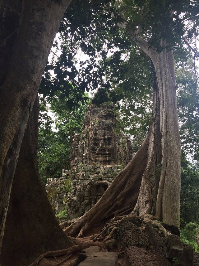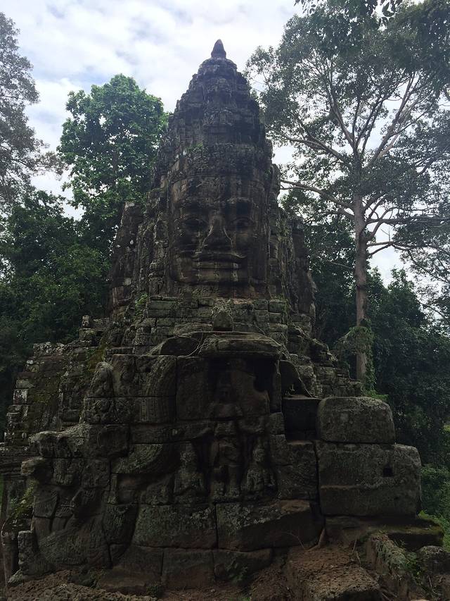 柬埔寨君王者耶跋摩七世建造的国家寺庙,最经典的是54座宝塔,上面有216尊面带淡淡微笑的佛像,是吴哥的精华之一。